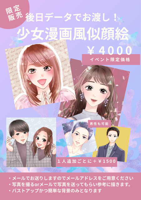 ・少女漫画風似顔絵の方は必ず連絡のとれるメールアドレスをご用意ください